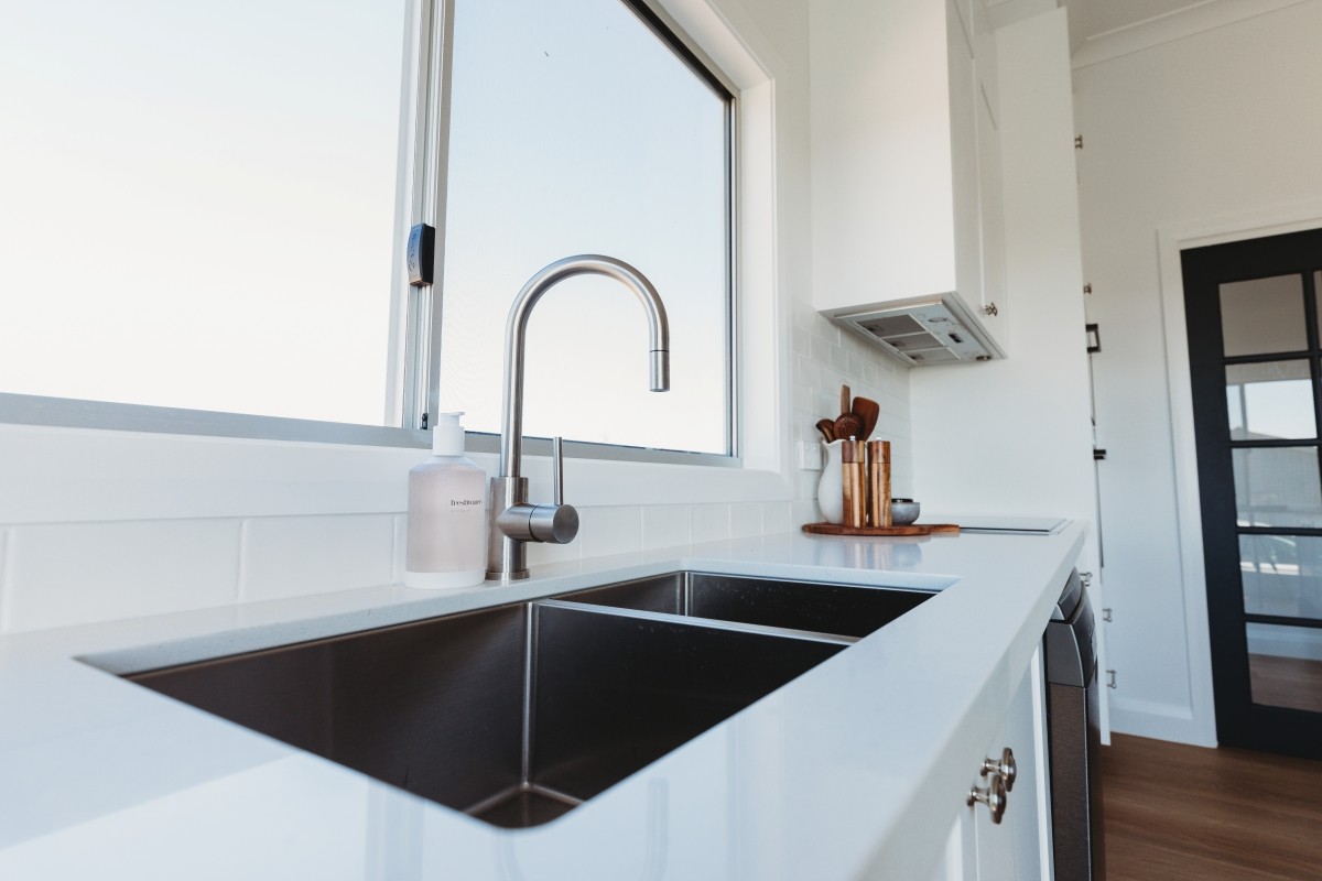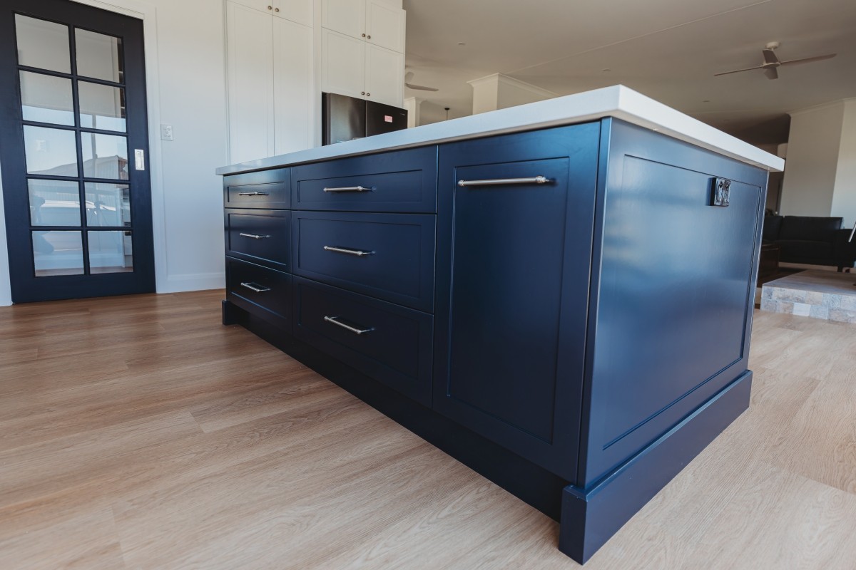 Step into a stunning, light-filled kitchen where farmhouse charm meets contemporary elegance — the perfect fusion of functionality and refined style. Featuring crisp white cabinetry that stretches to the ceiling, an expansive island bench in a bold navy finish, this space is designed to impress. The pristine white quartz countertop, ideal for casual meals or lively gatherings.